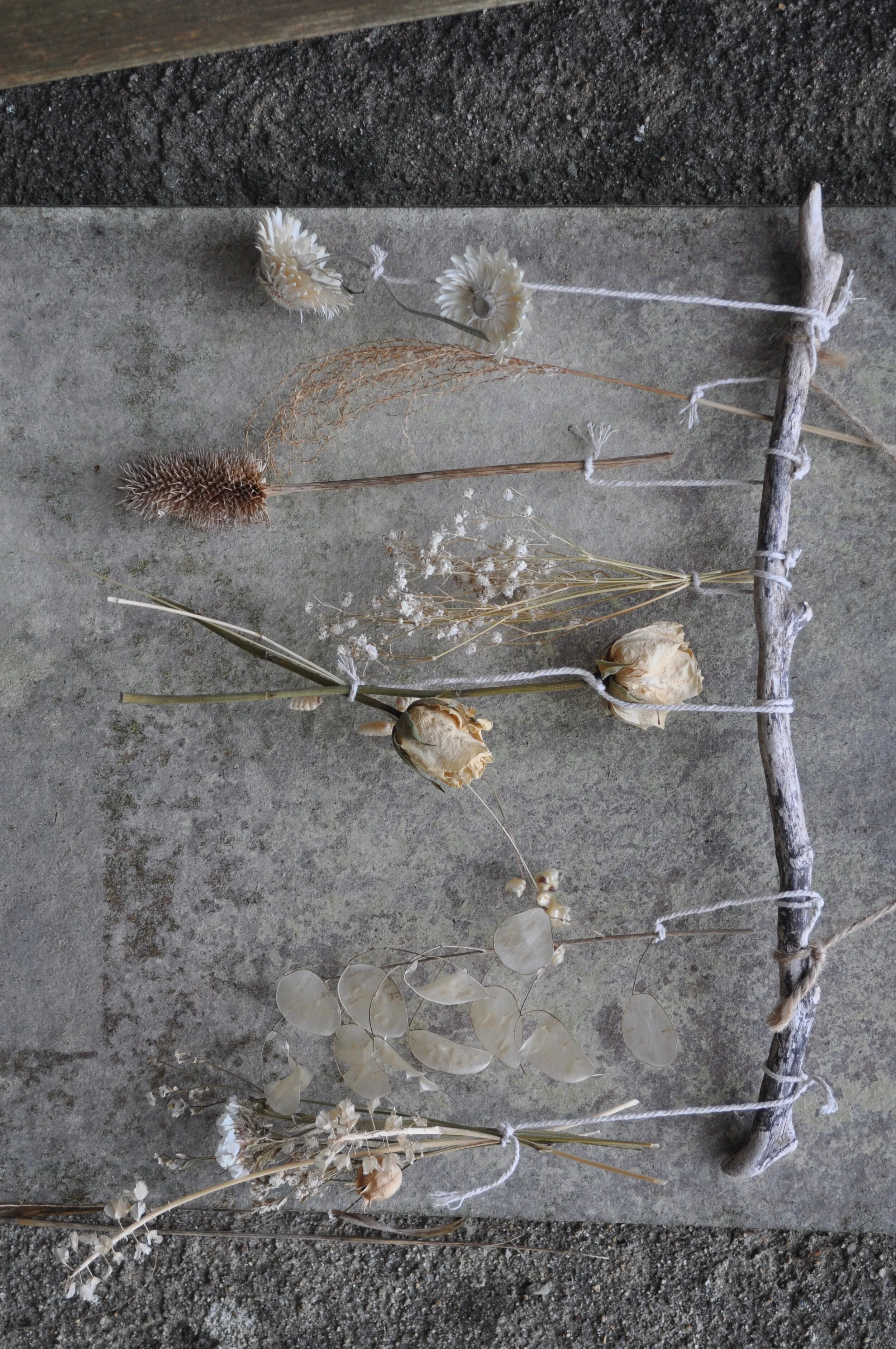 Fastened with recyled twine and string, with each flower dried in our studio over the year, to represent the changing seasons.
